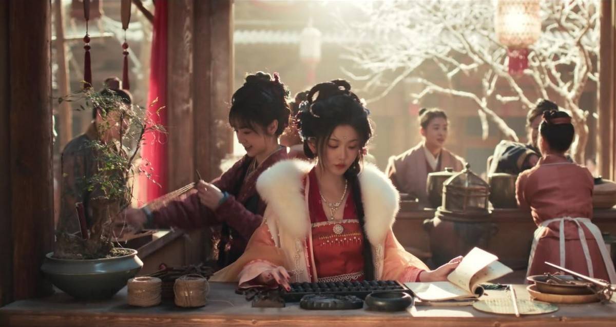 再来看看同样在古装剧中饰演女掌柜的刘亦菲。《梦华录》里的赵盼儿经历同样凄苦,虽有顾千帆(陈晓饰演)的帮助,但在宋都东京站稳脚跟依旧凭借自身本事。她将酒楼经营得有模有样,装修追求意境,菜品融入巧思。酒楼开业时真人演绎古画,赵盼儿亲自起舞斟酒,让人觉得钱花得值。赵盼儿能把酒楼开起来本就极具说服力,刘亦菲的形象和演技更是锦上添花。她一身粉衣,扮相雍容华贵,将唐宋审美演绎到极致,翩翩起舞介绍美酒佳肴时,没有半点逢迎讨好、出卖色相的意味,而是让人感觉长袖善舞、游刃有余、一切成竹在胸。在赵盼儿脸上,更多的是从容和自信。皇上亲临酒楼那场戏,她虽不知对方身份,却轻松应对,身姿端正,眼神不带有媚态,像是在不动声色地审视对方。客人点完菜后,赵盼儿离开时给顾客行礼,肢体动作缓慢而坚定,尽显对客人的尊重。自始至终,赵盼儿都未让人觉得她是靠脸和身材经营好酒楼的,更让人相信她凭借的确是真本事。扮演者刘亦菲出演《梦华录》时,并未为角色刻意瘦身走白瘦幼路线。酒楼开业那场戏,华贵唐装扮相的她身形珠圆玉润,脸部有肉感,虽不是巴掌小脸,也没有清晰下颌线,但模样更具说服力,美得更有韵味和冲击力,不仅是第一眼美人,还越看越耐看,让人沉沦于这种极致氛围感。刘亦菲饰演的赵盼儿,才是更符合中式审美的女掌柜脸。